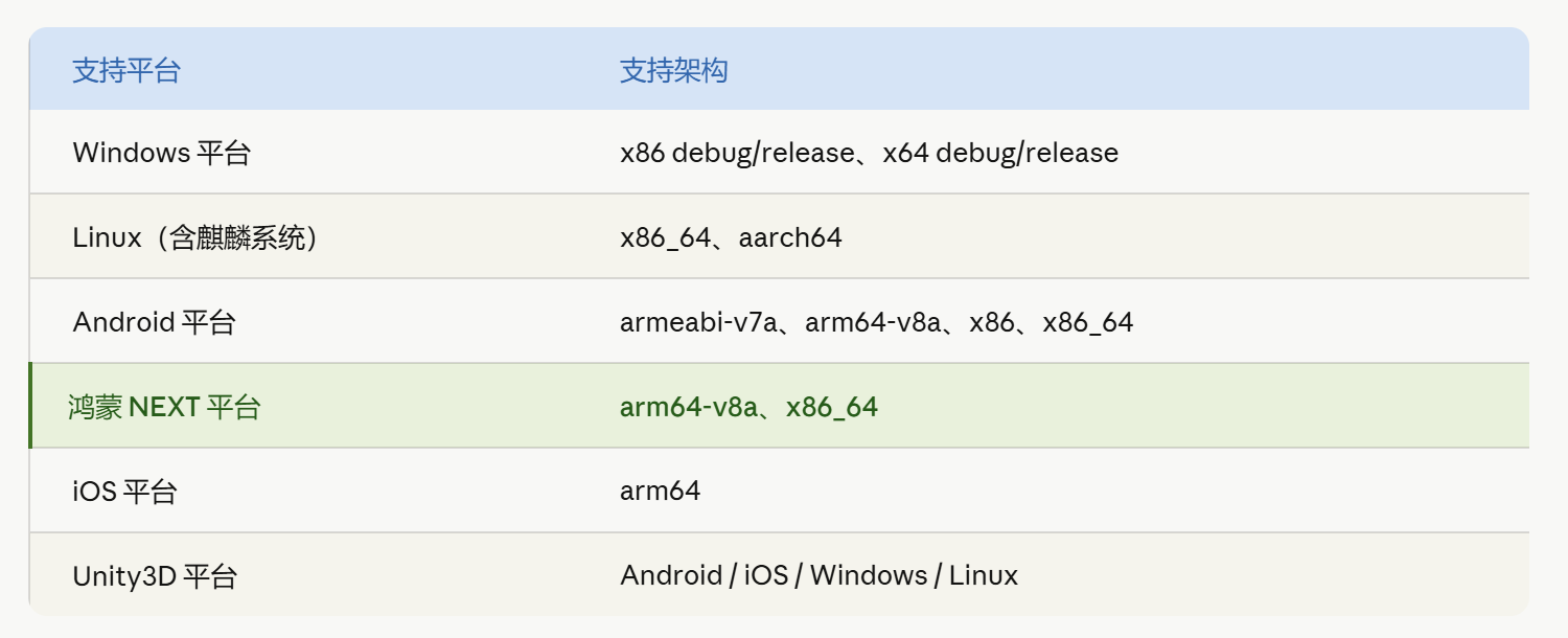 - 跨平台一致性:全面兼容 Windows、Linux(含麒麟)、Android、iOS、Unity3D,全平台接口统一、结构清晰,便于多端集成与维护。