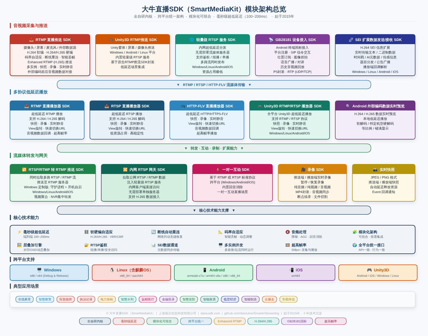 广泛应用于 安防监控、教育培训、应急指挥、工业视觉、智能物联网、远程医疗、媒体直播 等关键场景。